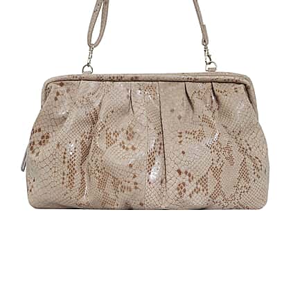 ASSOTS LONDON Harper Genuine Leather Snake Print Oversized Clutch Bag with Adjustable Shoulder Strap - Nude