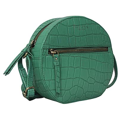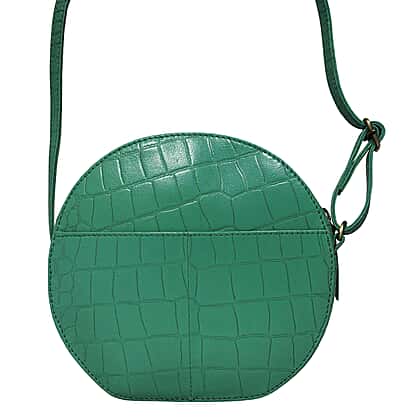 ASSOTS LONDON JANE Genuine Leather Round Croc Crossbody Bag (Size 18x10x6cm) - Green