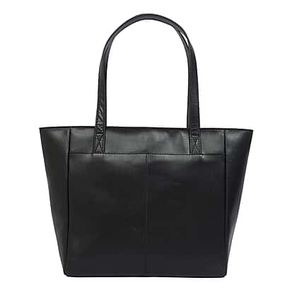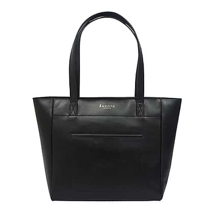 ASSOTS LONDON Linda Genuine Leather Slip Pocket Tote Bag black
