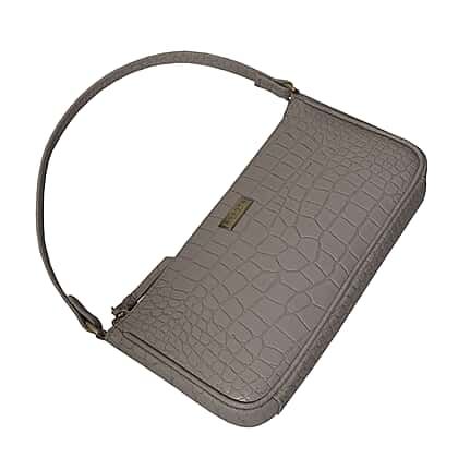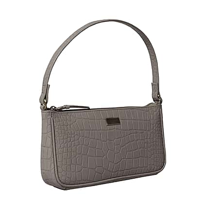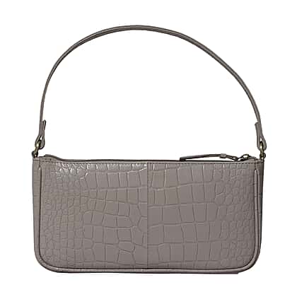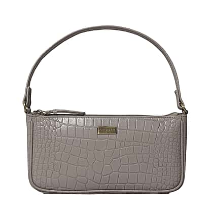 Assots London ZARA 100% Genuine Leather Croc Embossed Handbag - Ice Grey
