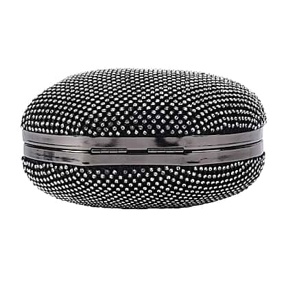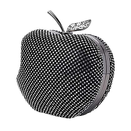 Back By Popular Demand - Apple Shape Crystal Clutch Bag with Long Chain Strap & Toggle Clip - Gun