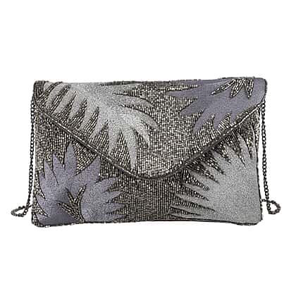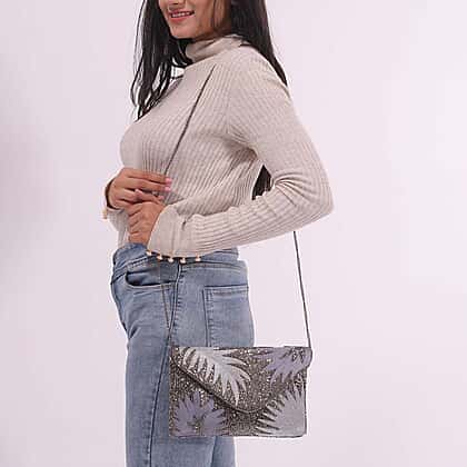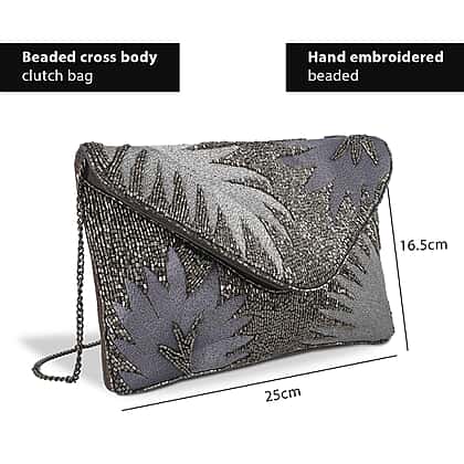Beaded Pattern Cross Body Clutch Bag - Grey