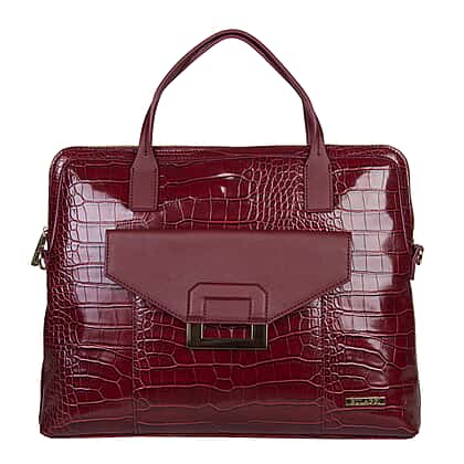 Bulaggi Collection - Cynthia Croco Print Laptop Bag with Slip Pocket at Front (40x31x06cm) - Burgundy