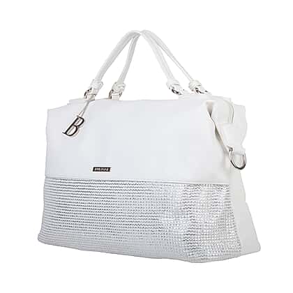 Bulaggi Collection - Wave Duffle Bag with Zipper Closure and Detachable Shoulder Strap (Size 40x26x17 cm) - White