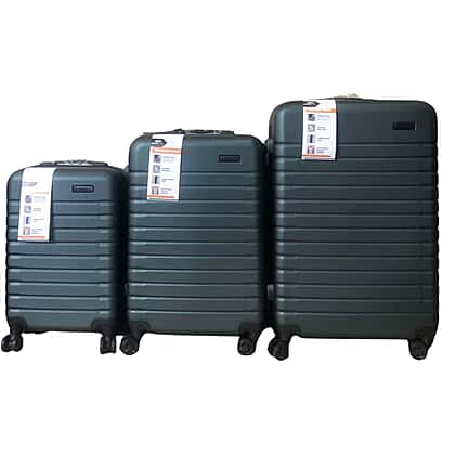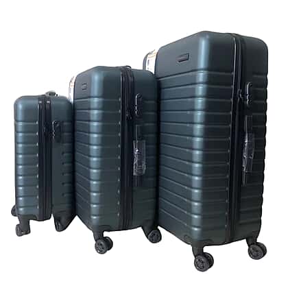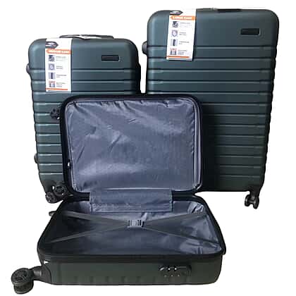 Closeout Bordlite Set of 3 - Durable Hard Shell 4 Wheel Suitcases with and Soft Grip Handles - Green