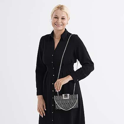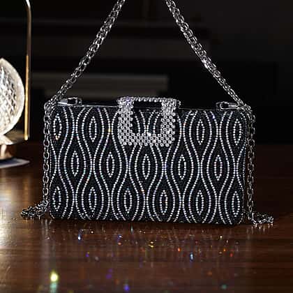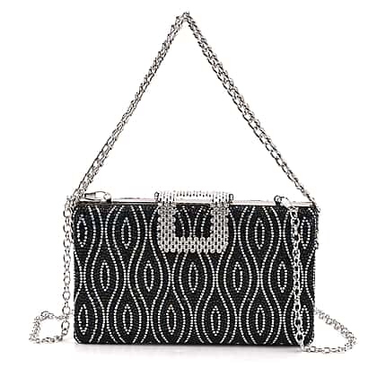 CLOSEOUT DEAL - Crystal Embellished Crossbody Bag - Black