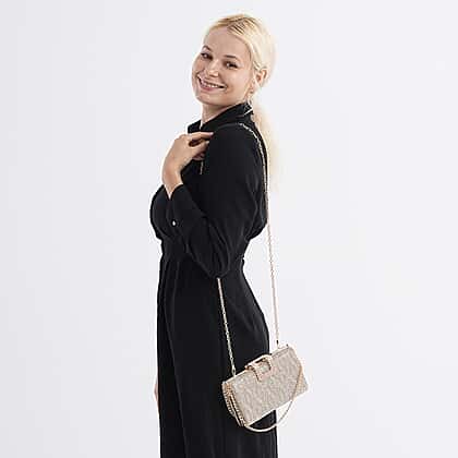 CLOSEOUT DEAL - Crystal Embellished Evening Clutch Bag with Metallic Chain Strap - Gold
