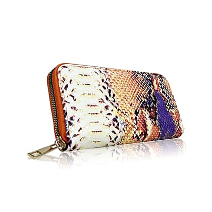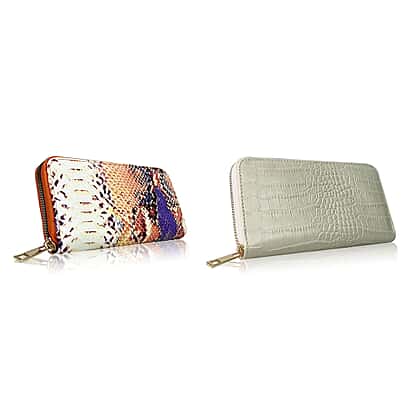 Closeout Deal - Set of 2 - Snake Pattern Zip Around Wallet - Cream and Orange