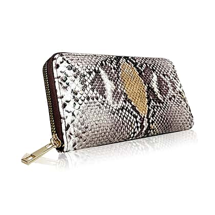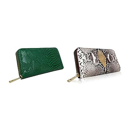 Closeout Deal - Set of 2 - Snake Pattern Zip Around Wallet (Size 19x10x3 cm) - Green and Brown