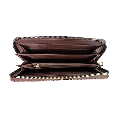 Closeout Deal - Set of 2 - Snake Pattern Zip Around Wallet - Green and Brown
