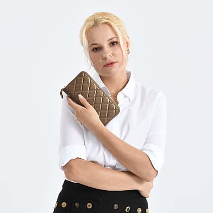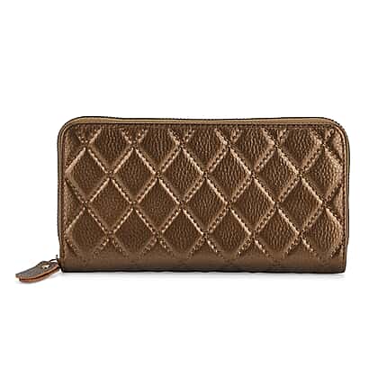 Closeout Deal- Genuine Leather Embossed Rhombus RFID Protected Clutch - Dark Gold