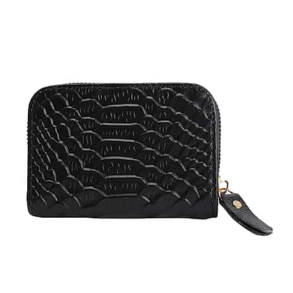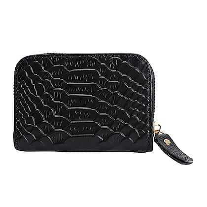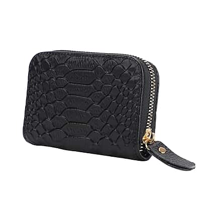 Closeout Deal Genuine Leather Snake Skin Pattern Wallet - Black