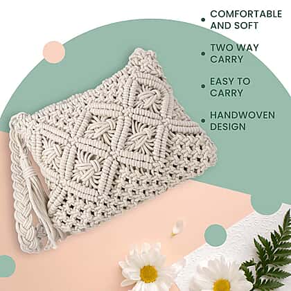 Cotton Crossbody Macrame Bag with Long Handle - White