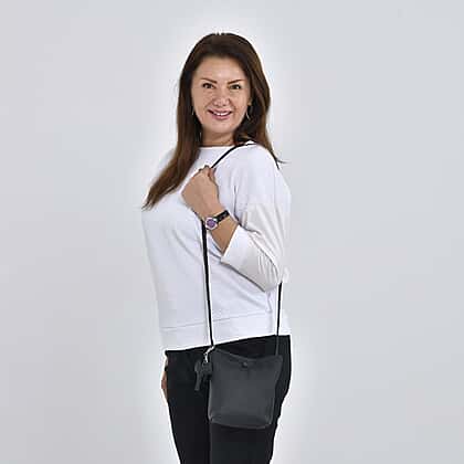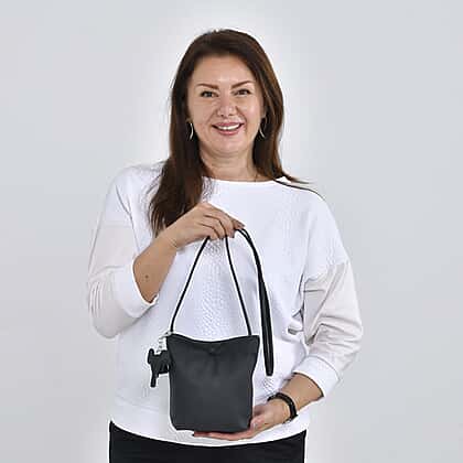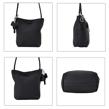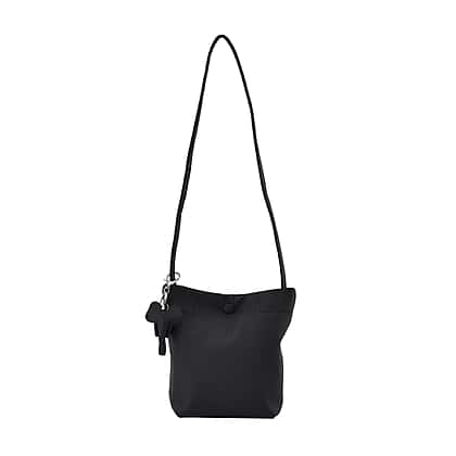 Crossbody Bag with Long Strap and Elephant Keychain (Size 19x17x8 cm) - Black