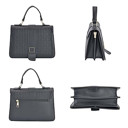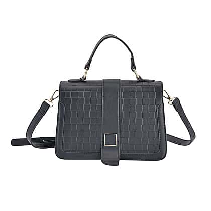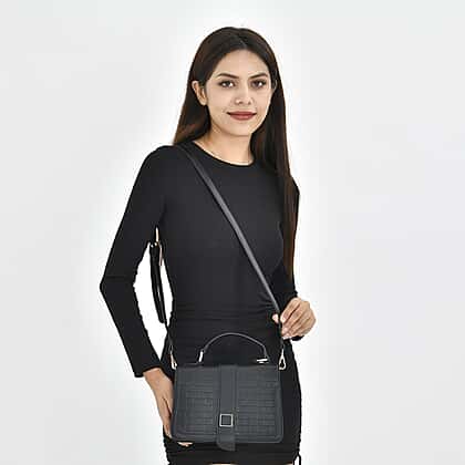 Crossbody Bag with Magnetic Button & Zipper Closure - Black
