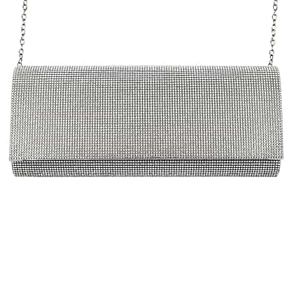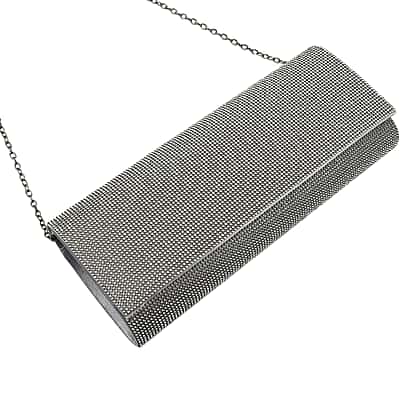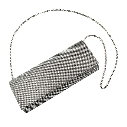 Crystal Clutch Bag with Exterior Pocket & Shoulder Strap - Black