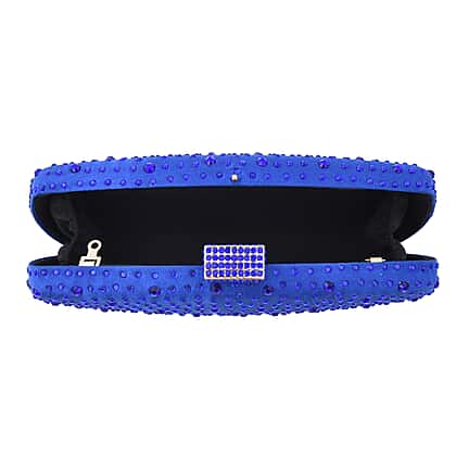 Crystal Decorative Clutch Bag with Long Chain Strap - Blue