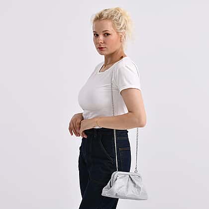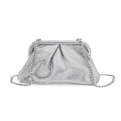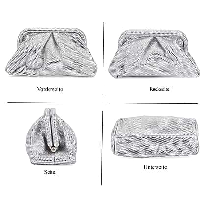 Crystal Patterned Clutch (Size 9x4x5 in) - Silver & Rose Pink