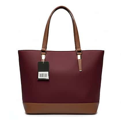 Designer Closeout 2 Toned Tote Bag - Burgundy