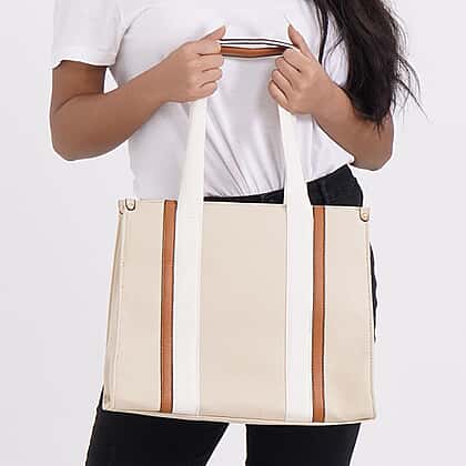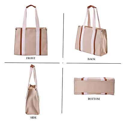 Designer Inspired- Canvas Tote Bag With Zipped Pocket & Handle Drop - Beige