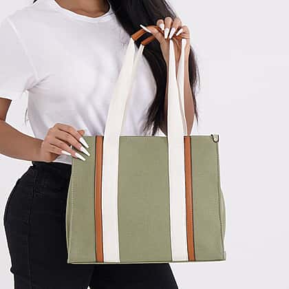 Designer Inspired- Canvas Tote Bag With Zipped Pocket - Handle Drop - Olive