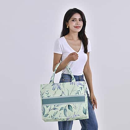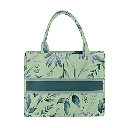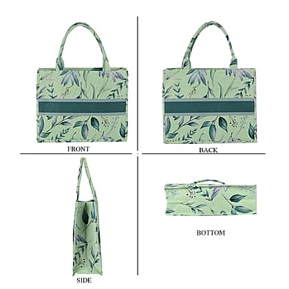 Designer Inspired Closeout - Floral Pattern Tote Bag with Handle Drop - Green