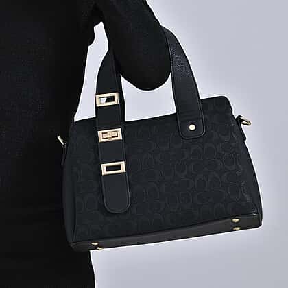 Designer Inspired Patterned Crossbody Bag - Black