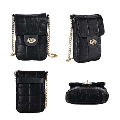 Doorbuster- Quilted Pattern Puffy Crossbody Bag with RFID Protection - Black