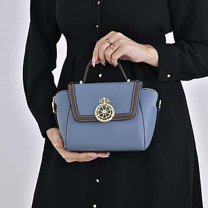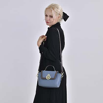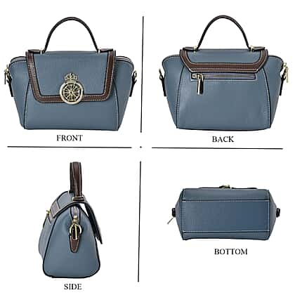 Elegant 100% Genuine Leather Crossbody Bag With Flip Top Zip Closure & Detachable Shoulder Trap - Blue