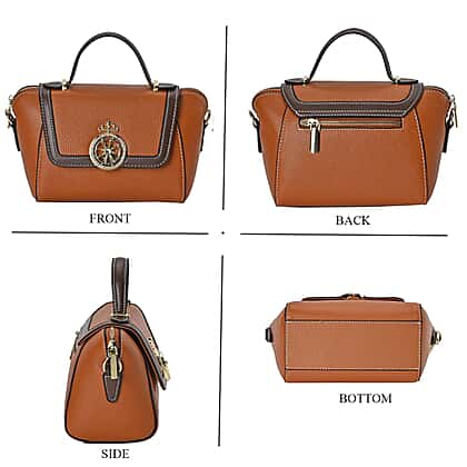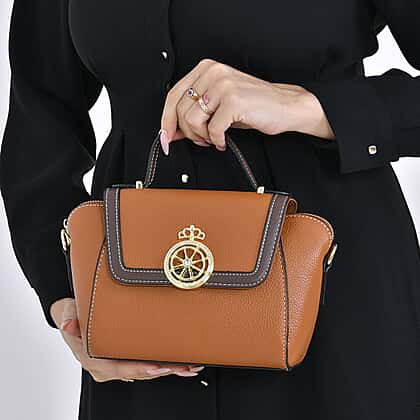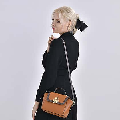 Elegant 100% Genuine Leather Crossbody Bag With Flip Top Zip Closure & Detachable Shoulder Trap - Tan