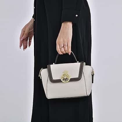 Elegant 100% Genuine Leather Crossbody Bag With Flip Top Zip Closure - Detachable Shoulder Trap - White