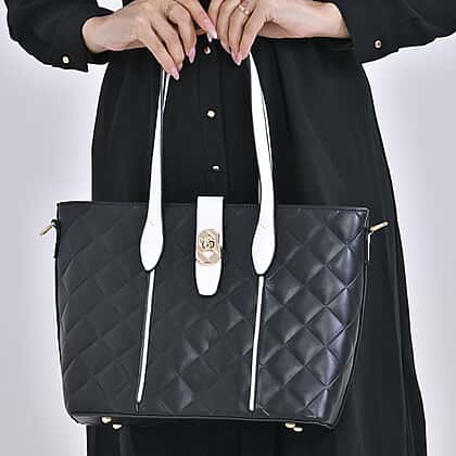 Designer Inspired Embossed Quilted Crossbody Bag with Gold Tone Hardware - Black