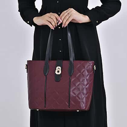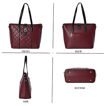 Designer Inspired Embossed Quilted Crossbody Bag with Gold Tone Hardware - Burgundy