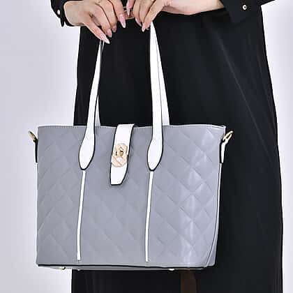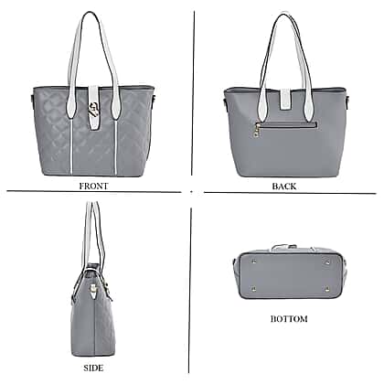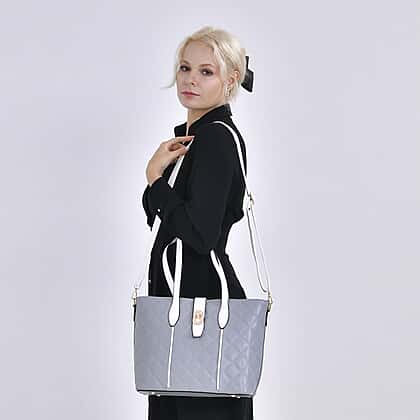 Designer Inspired Embossed Quilteed Crossbody Bag with Gold Tone Hardware - Grey