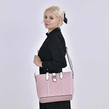 Designer Inspired Embossed Quilted Crossbody Bag with Gold Tone Hardware - Pink