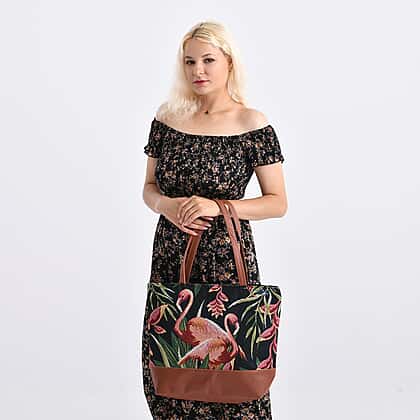 Flamingo Tote Bag (Size 35x12x36 cm) - Navy Pink & Navy Pink