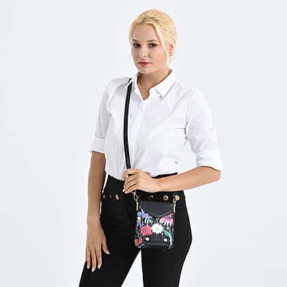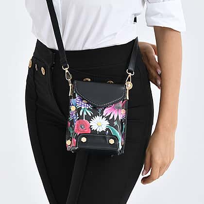 Floral Embroidered Minority Style Crossbody Bag with Long Adjustable Strap - Black & Multicolour