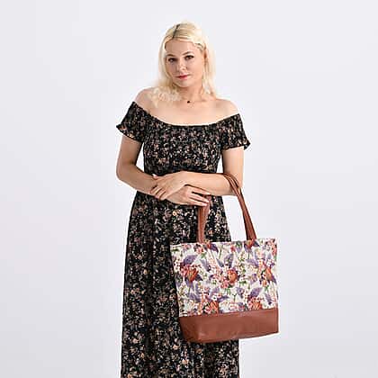 Flower Tote Bag (Size 35x12x36 cm) - White Multi & Multicolor