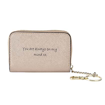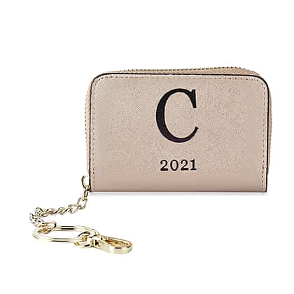 Genuine Leather Alphabet C Wallet with Engraved Message on Back Side (Size 11X7.5X2.5 Cm) - Gold