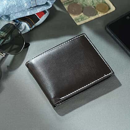 Genuine Leather Bi-Fold Wallet (Size 11x1x8 cm) - Brown