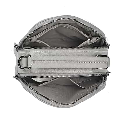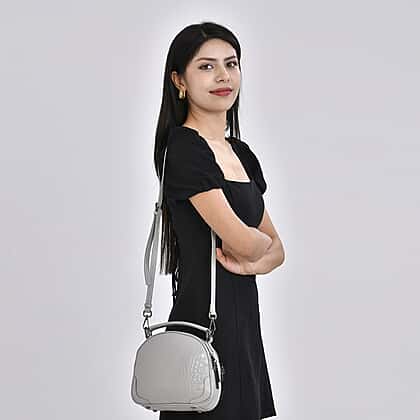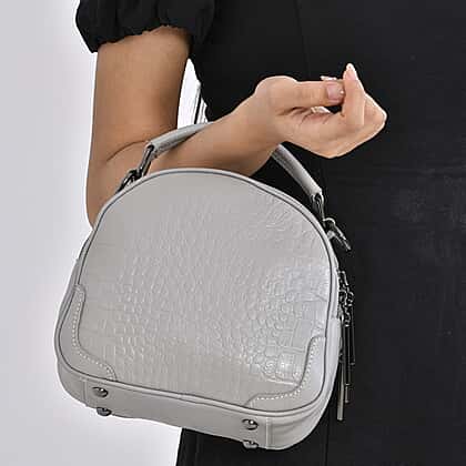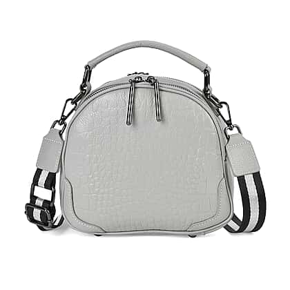 Genuine Leather Circle Croc Embossed Crossbody Bag - Grey