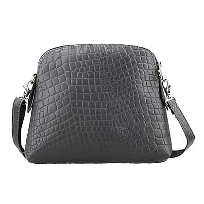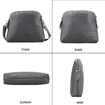 Genuine Leather Croc Embossed Crossbody Bag - Grey