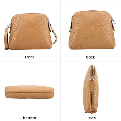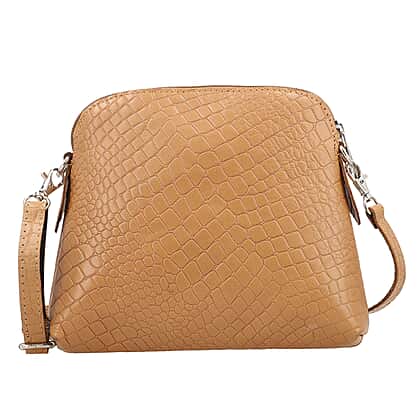 Genuine Leather Croc Embossed Crossbody Bag - Tan