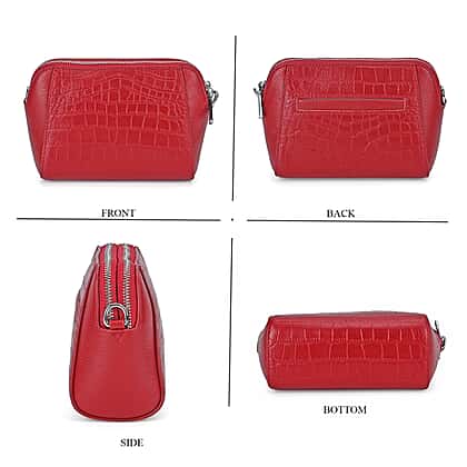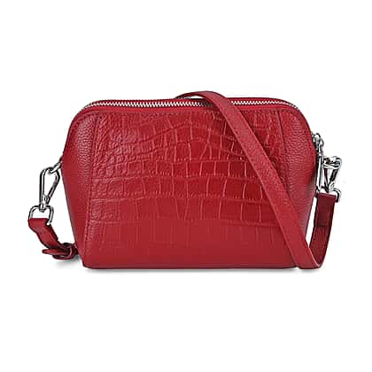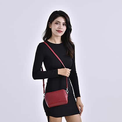 100% Genuine Leather Croco Embossed Crossbody Bag (Size 18x8x14 cm) - Burgundy
