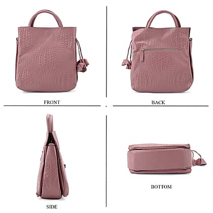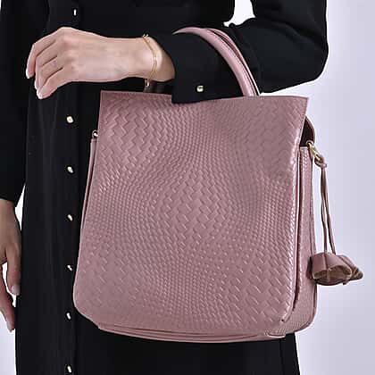 Closeout Deal - 100% Genuine Leather Weave Pattern Crossbody Bag - Pink