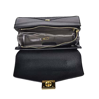 • It has a flap cover with zipper fastening and multiple slip-in and slide-in pockets