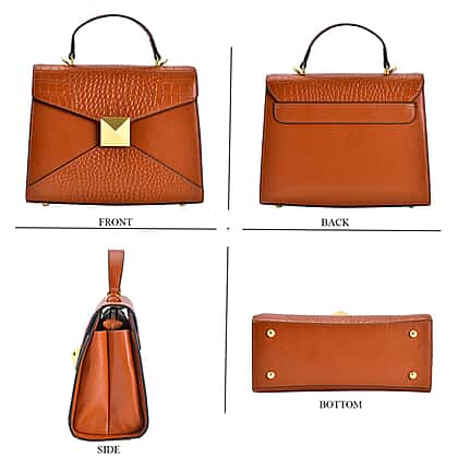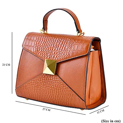 - Structured genuine leather handbag with a versatile top handle.