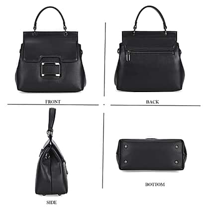 Genuine Leather Crossbody Bag (Size 25x11x22 cm) - Black
