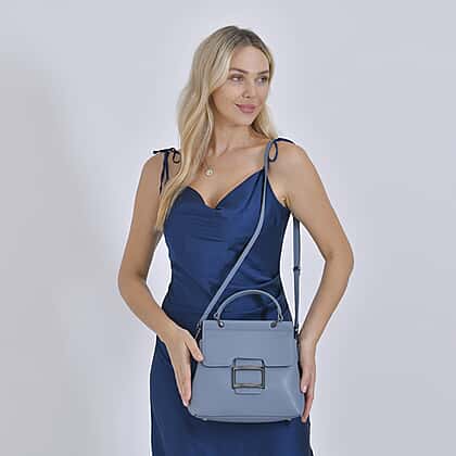 Genuine Leather Crossbody Bag (Size 25x11x22 cm) - Blue