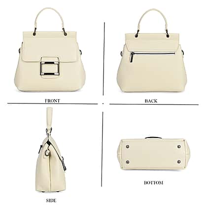 Refresh your everyday style with this classic genuine leather crossbody bag in elegant off-white. Crafted from high-quality leather, it offers both sophistication and long-lasting use. The back zip pocket enhances practicality, and under the flap, you'll find two zippered compartments to keep your belongings secure. Inside, the polyester-lined interior includes one zip pocket and one slip pocket, perfect for organising your essentials. The bottom corners are fitted with four anti-friction rivets to prevent wear. With a detachable shoulder strap, you can easily convert it into a shoulder bag, making it ideal for daily errands and household activities.